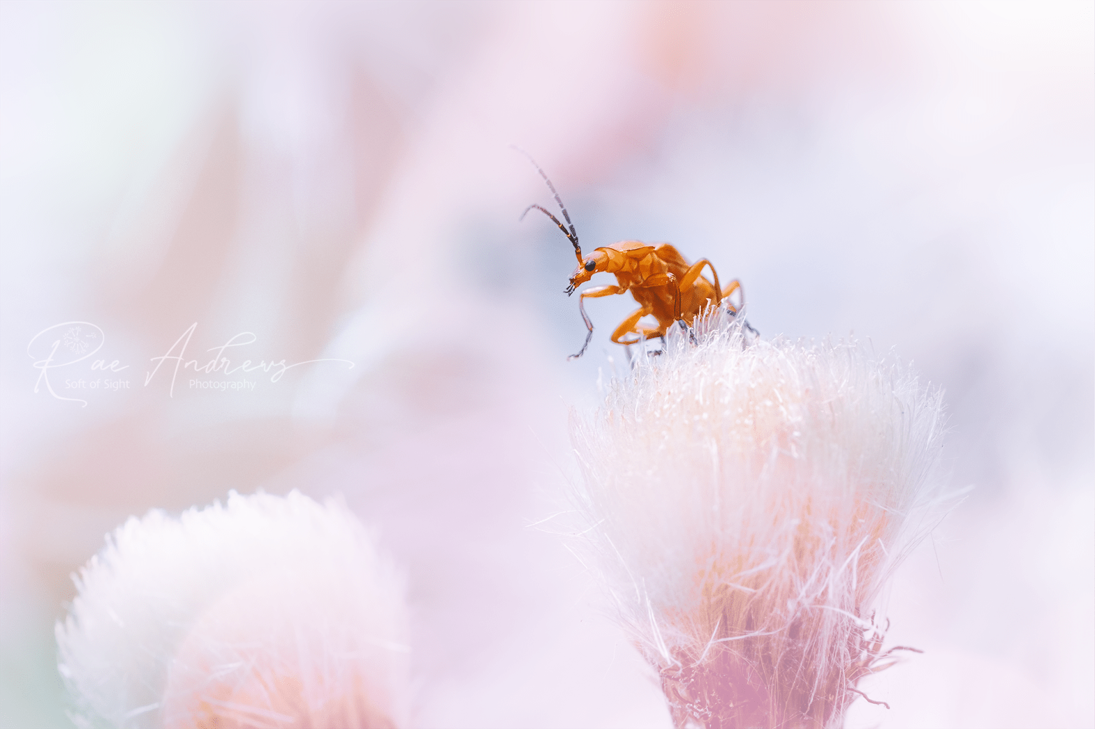 A mass of pale fluffy white and pale pink – thistledown, with the ghost of a couple of the thistle seed heads at the bottom of the frame. Seemingly suspended in the dreamy white mist (and yet actually standing on the soft downy seeds) is a long, slim orange beetle with long antennae and dark… Continue reading Beetling About